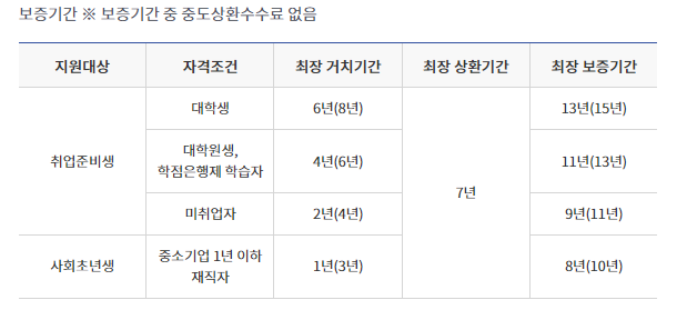 중소기업에 1년이하 재작자의 경우 1년의 거치기관이 주어지며, 최대 상환기관은 모두 7년으로 동일하게 적용되고 있습니다.