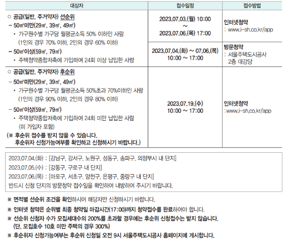 - 청약신청 접수기간 (선순위) : 2023년 7월 3일 (월) ~ 7월 6일 (목)